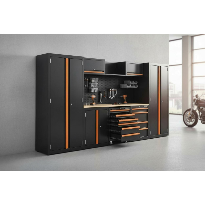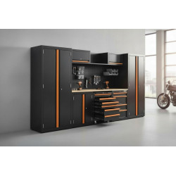 Optez pour un pack ultra complet pour transformer votre garage en véritable atelier professionnel grâce sa servante et son armoire supplémentaire